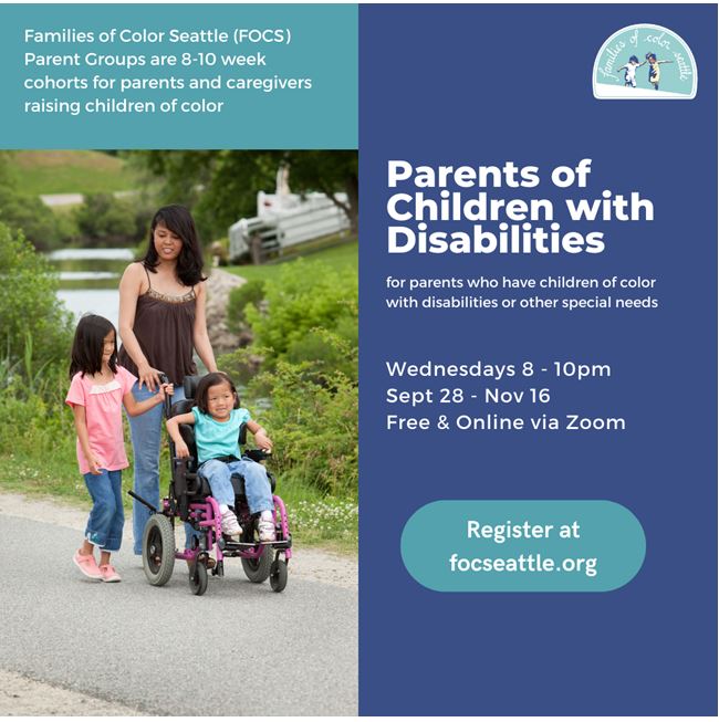 This group is for parents who have children of color with disabilities or other special needs, and centers the narrative of the children and their families through an intersectional lens.